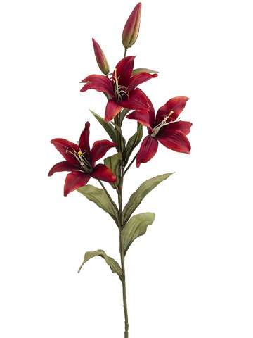 Club Pack of 12 Artificial Wine Lily Silk Flower Sprays 36"