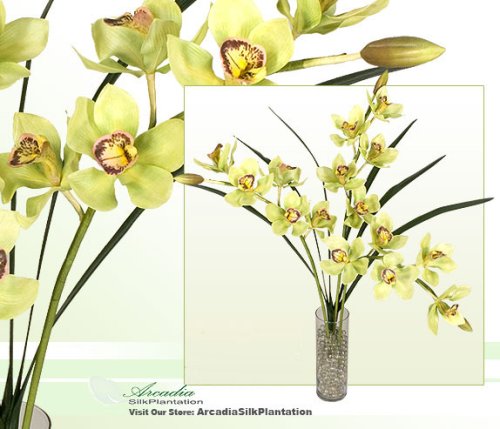 Three 31" Cymbidium Orchid Artificial Silk Flowers with leaves