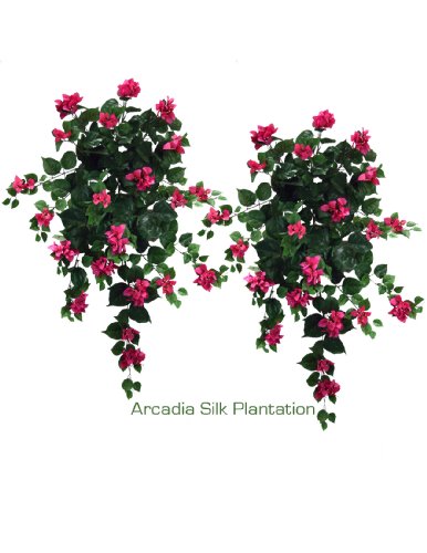 TWO 36" Artificial Bougainvillea Hanging Flower Bushes, with No Pot,