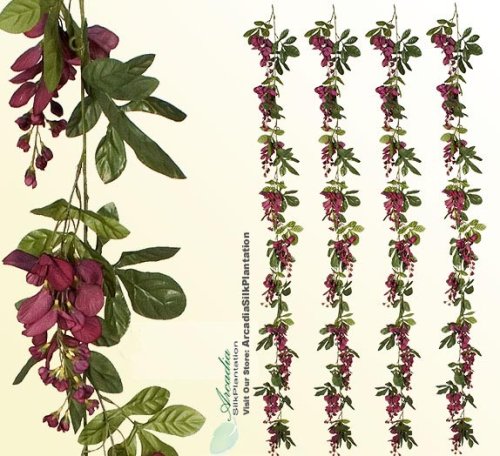 Four 6' Artificial Wisteria Garlands Silk Flowers_Burgundy