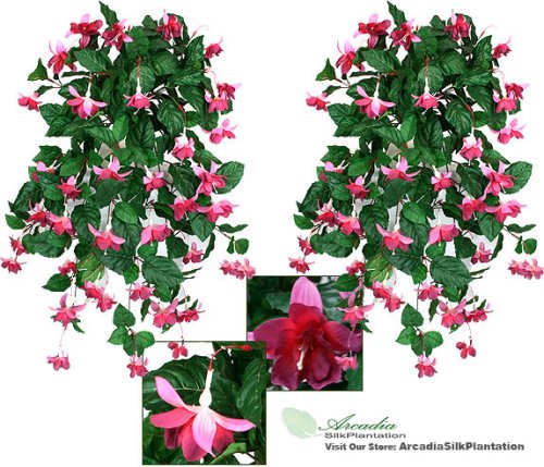 TWO 35" Artificial Fuchsia Hanging Flower Bushes, with No Pot,
