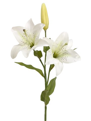 Artificial Oriental Lily Spray Item #FSL403-CR Cream colored flower and bud For indoor use Dimensions: 21"H Approximate diameter of flower head: 3.5" Material(s): Polyester/Plastic/Wire