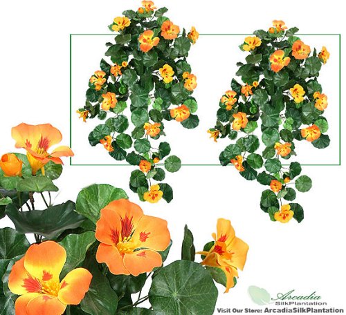 TWO 30" Artificial Nasturtium Hanging Flower Bushes, with No Pot,